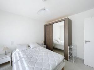 Klimatizovaný apartmán v T2 - Résidence avec piscine má 1 ložnici, obývací prostor, 1 koupelnu a kuchyňský kout s myčkou a lednicí. V apartmánu ubytování nechybí TV a koupelna s fénem.