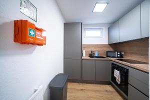 V tomto apartmánu WW01 - Monteurwohnung Koblenz 2 Bedrooms - 4P jsou 2 ložnice, TV s plochou obrazovkou a kuchyň.