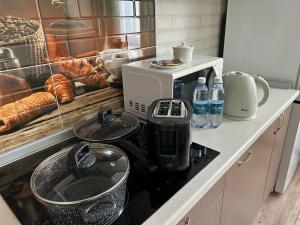 In the well-equipped kitchen, guests will find a stovetop, a refrigerator, kitchenware and a microwave. The apartment provides a washing machine, a private entrance, a dining area, a flat-screen TV with cable channels, as well as city views. The unit offers 2 beds.