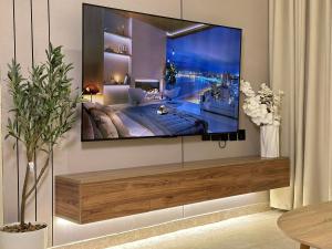 The apartment's kitchen, which has a refrigerator and a microwave, is available for cooking and storing food. The spacious apartment features air conditioning, soundproof walls, a minibar, a tea and coffee maker, as well as a flat-screen TV with streaming services. The unit has 1 bed.