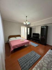 Apartmán Двухкомнатная квартира в Золотом квадрате je vybaven 1 ložnicí, TV s plochou obrazovkou, klimatizací a obývacím pokojem.