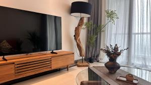 The infinity pool and sauna are the standout features of this apartment. In the fully equipped kitchen, guests will find a stovetop, a refrigerator, a dishwasher and kitchenware. The spacious air-conditioned apartment provides a flat-screen TV with cable channels, a washing machine, a tea and coffee maker, a seating area as well as sea views. The unit offers 2 beds.