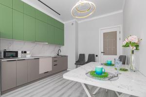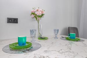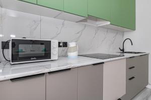 In the well-fitted kitchen, guests will find a stovetop, a refrigerator, an oven and a microwave. The apartment offers a washing machine, soundproof walls, a tea and coffee maker, a flat-screen TV, as well as city views. The unit offers 2 beds.
