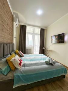 Gelegen 3,5 km von Atakent-Expo, 3,9 km von Kasteev State Museum of Arts und 4,3 km von Zentralstadion Almaty, bietet die Unterkunft Уютные апартаменты в центре Übernachtungsmöglichkeiten in Almaty. Gäste, die in dieser Ferienwohnung übernachten, haben Zugang zu kostenlosem WLAN, einer voll ausgestatteten Küche und einem Balkon.