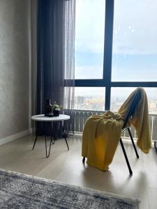 Apartmán Шикарный панорамный вид на город je vybaven 1 ložnicí, TV s plochou obrazovkou, klimatizací a obývacím pokojem.