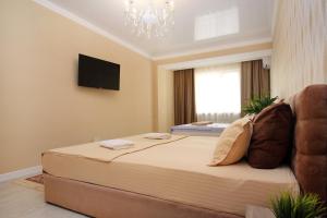 Klimatyzowany apartament Двухкомнатные апартаменты ЖК Молодежный z 1 sypialnią posiada również salon. W obiekcie znajduje się telewizor z płaskim ekranem.