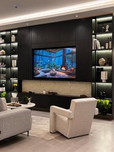 This spacious apartment is comprised of 1 living room, 3 separate bedrooms and 3 bathrooms with a walk-in shower and free toiletries. The well-equipped kitchen features a stovetop, a refrigerator, kitchenware and an oven. The air-conditioned apartment offers a flat-screen TV with streaming services, soundproof walls, a tea and coffee maker, a seating area as well as city views. The unit offers 4 beds.
