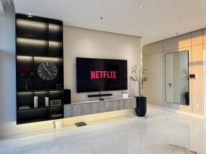 This apartment's standout features are the pool with a view and fireplace. Meals can be prepared in the kitchen, which is fitted with a refrigerator, a dishwasher, kitchenware and an oven. The spacious air-conditioned apartment offers a flat-screen TV with streaming services, a washing machine, a tea and coffee maker, a seating area as well as city views. The unit has 2 beds.