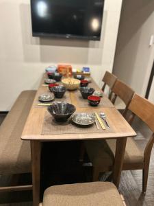 Guests will have a special experience as this holiday home offers a hot tub. Featuring a private entrance, this air-conditioned holiday home is comprised of 2 living rooms, 4 separate bedrooms and 2 bathrooms with a bath and a shower. In the kitchen, guests will find a refrigerator, kitchenware, a microwave and a tea and coffee maker. The holiday home features tatami floors, a seating area with a flat-screen TV with streaming services, a washing machine, soundproof walls, as well as a minibar. V této ubytovací jednotce je k dispozici 7 postelí.