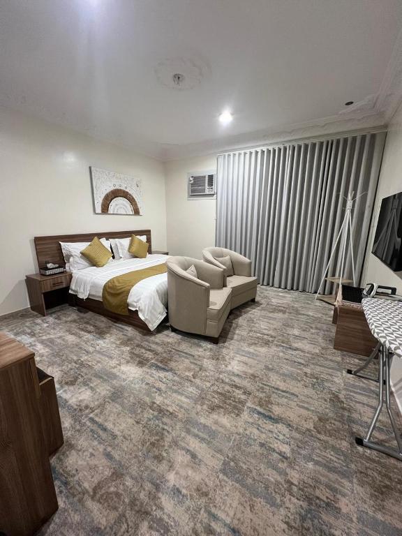 Klimatizovaný apartmán غرفة خاصة في مبنى مستقل قريبة من المسجد النبوي بالمدينة المنورة nabízí 1 ložnici, kuchyňský kout a TV s plochou obrazovkou.