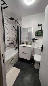 Featuring a private entrance, this apartment comprises 1 living room, 1 separate bedroom and 1 bathroom with a bath and a hairdryer. The well-equipped kitchen features a stovetop, a refrigerator, a dishwasher and kitchenware. Boasting a terrace with garden views, this apartment also provides a washing machine and a flat-screen TV with streaming services. The unit offers 2 beds.