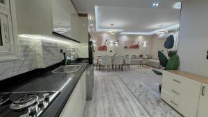 Klimatizovaný apartmán مدينتي - The Iconic Tower View disponuje 3 ložnicemi, plně vybavenou kuchyní a terasou s výhledem do zahrady. Vybavení مدينتي - The Iconic Tower View zahrnuje TV s plochou obrazovkou.
