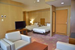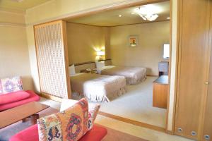 The spacious twin room offers air conditioning, a tea and coffee maker, as well as a private bathroom boasting a bath and a shower. The twin room features a flat-screen TV, a safe deposit box, a carpeted floor, yukata as well as a quiet street view. The unit has 2 beds.