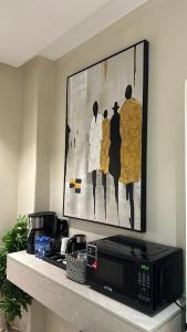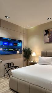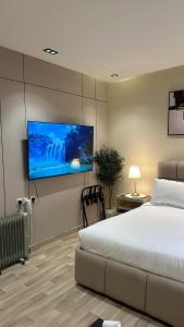 Klimatyzowany apartament posiada sypialnię i telewizor.