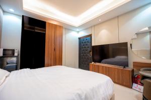 Este apartamento en استوديو فندقي بموقع مميز مرفق ضيافة سياحية خاصة- دخول ذاتي cuenta con 1 dormitorio, aire acondicionado y TV de pantalla plana.