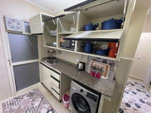 Das klimatisierte شقة فندقية - المستقبل - Zayed Hosting umfasst zwei Schlafzimmer, eine Küche und ein Badezimmer. Es gibt einen Flachbild-TV.