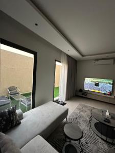 The apartment's kitchen, which features a refrigerator and a microwave, is available for cooking and storing food. The air-conditioned apartment provides a flat-screen TV, a private entrance, a tea and coffee maker, a seating area as well as garden views. The unit offers 5 beds.
