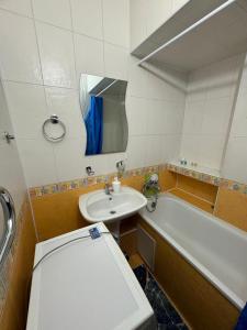 The air-conditioned apartment has 2 bedrooms, 1 bathroom with a bath and a kitchen. The apartment's kitchen, which features an electric kettle, is available for cooking and storing food. Boasting a balcony, this apartment also offers a washing machine, a wardrobe and a flat-screen TV. V této ubytovací jednotce se nachází 3 postele.