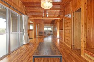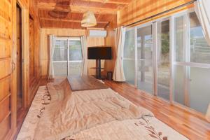 Featuring a private entrance, this air-conditioned holiday home comprises 1 living room, 2 separate bedrooms and 1 bathroom with a shower and a hairdryer. Meals can be prepared in the kitchen, which comes with a stovetop, a refrigerator, kitchenware and a microwave. The holiday home provides a washing machine, a wardrobe, an electric kettle, a flat-screen TV, as well as garden views. The unit offers 6 futons.