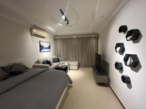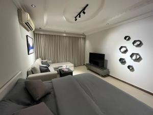 L'appartamento di 122 شقة فخمة الملقا è climatizzato e include 1 camera da letto e TV a schermo piatto.