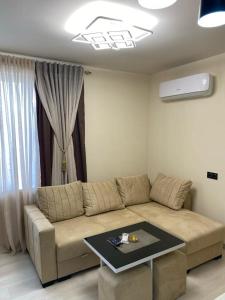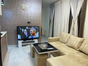 The apartment's kitchen, which features a refrigerator, is available for cooking and storing food. This apartment is air-conditioned and has a seating area with a flat-screen TV, a washing machine, a wardrobe, a dressing room, as well as a tiled floor. The unit is furnished with 2 beds.