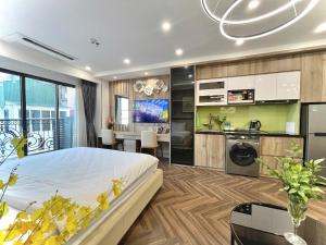 Boasting a private entrance, this air-conditioned suite includes 1 living room, 1 separate bedroom and 1 bathroom with a bath and a shower. In the fully equipped kitchen, guests will find a stovetop, a refrigerator, kitchenware and a microwave. The spacious suite offers a washing machine, soundproof walls, a minibar, a flat-screen TV with streaming services, as well as city views. V této ubytovací jednotce se nachází 1 postel.