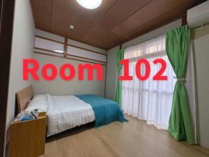 This quadruple room is air-conditioned and has a shared bathroom, tatami floors, a wardrobe and a terrace. The unit has 4 futons.