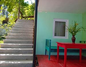 Guests will have a special experience as the holiday home provides a fireplace. Featuring a private entrance, this holiday home also consists of 1 separate bedroom, 1 bathroom with a shower, a kitchen and a dining area. Guests can make meals in the fully equipped kitchen that has a stovetop, a refrigerator and kitchenware. The holiday home features a washing machine, a seating area, a wardrobe as well as a balcony with garden views. The unit offers 2 beds.