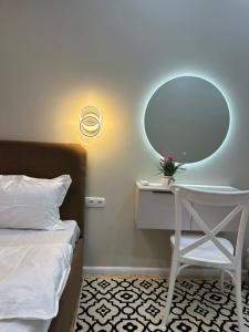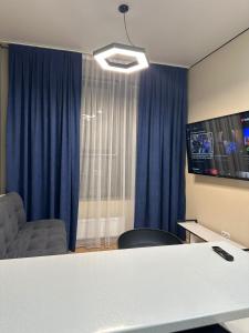 Apartmán Уютная квартира в центре в новом ЖК КРИСТАЛЛ je vybaven 1 ložnicí, TV s plochou obrazovkou, klimatizací a obývacím pokojem.