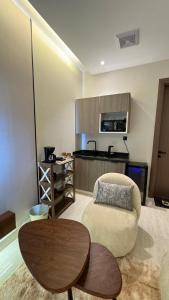 Guests can make meals in the kitchenette that features a refrigerator, kitchenware, a microwave and a tea and coffee maker. This wheelchair accessible apartment has air conditioning, a seating area with a flat-screen TV and a roll-in shower. The unit has 1 bed.