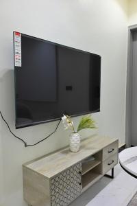 Klimatyzowany apartament #131استديو إيجار يومي بجلسة جميلة - مرتاح posiada sypialnię i telewizor.