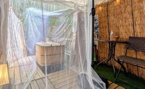 This double room features a hot tub. The double room includes a private bathroom, well-fitted with a bath, a shower, a bidet, a hairdryer and slippers. The kitchen has a refrigerator, kitchenware and a microwave. The spacious double room features air conditioning, a washing machine, tatami, a tea and coffee maker and a flat-screen TV with streaming services. The unit has 4 beds.