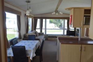 This mobile home comes with 1 living room, 2 separate bedrooms and 1 bathroom with a shower and a hairdryer. The mobile home features a seating area, a dining area, a wardrobe, an electric kettle and a flat-screen TV. The unit has 3 beds.