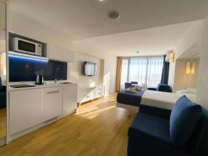 The air-conditioned apartment has 1 bedroom and 1 bathroom with a shower and a hairdryer. In the well-equipped kitchen, guests will find a stovetop, a refrigerator, kitchenware and a microwave. The apartment offers a washing machine, soundproof walls, a seating area, a flat-screen TV, as well as sea views. The unit has 3 beds.