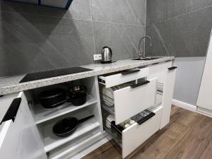 Featuring a private entrance, this air-conditioned apartment comprises 1 living room, 1 separate bedroom and 1 bathroom with a bath and a shower. Meals can be prepared in the well-fitted kitchen, which comes with a stovetop, a refrigerator, kitchenware and a microwave. The apartment provides a flat-screen TV with cable channels, a washing machine, soundproof walls, a wardrobe as well as an inner courtyard view. V této ubytovací jednotce je k dispozici 2 postele.