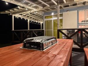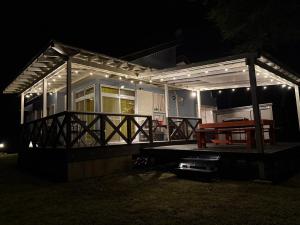 Boasting a private entrance, this air-conditioned holiday home features 1 living room, 2 separate bedrooms and 1 bathroom with a bath and a shower. Guests will find a stovetop, a refrigerator, kitchenware and a microwave in the fully equipped kitchen. The holiday home also comes with a barbecue. Featuring a terrace with garden views, this holiday home also features a washing machine and a flat-screen TV. The unit has 3 beds and 5 futons.