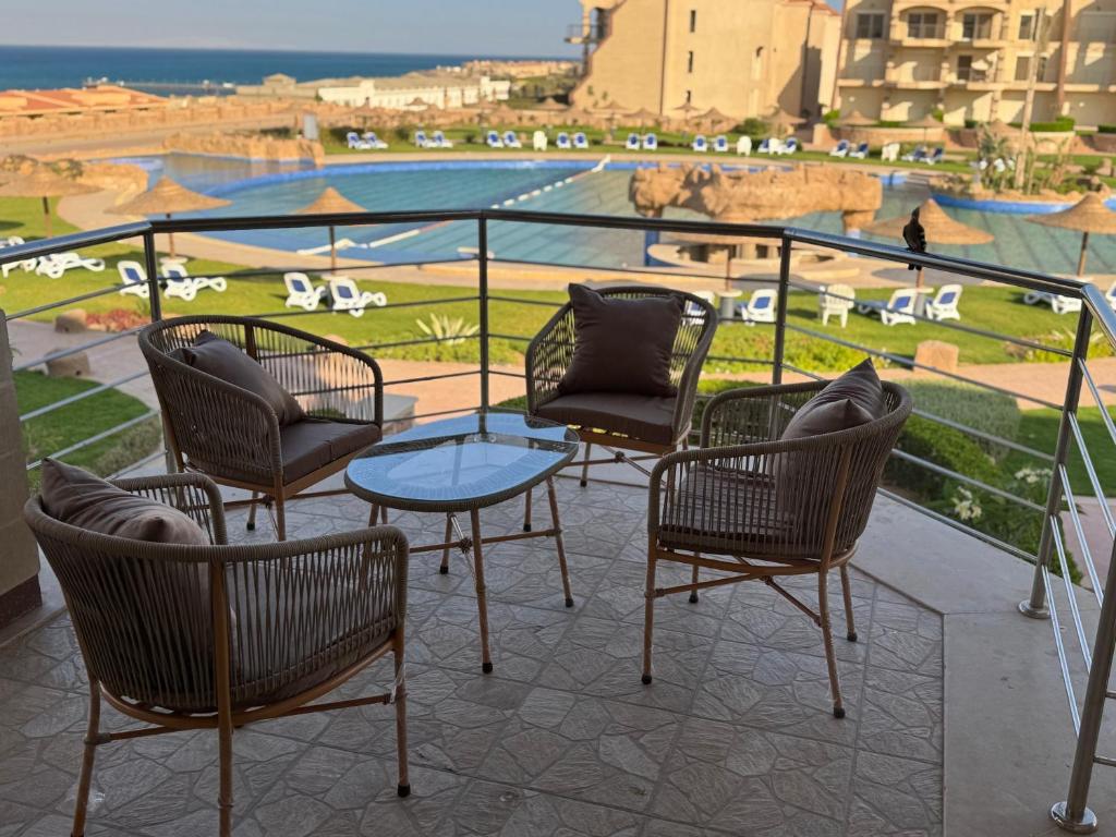 Guests can make meals in the kitchen that features a stovetop, a refrigerator, kitchenware and a microwave. Boasting a terrace with pool views, this apartment also features air conditioning and a flat-screen TV. The unit has 3 beds.