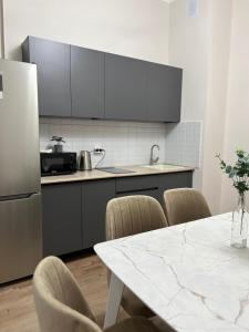 Apartmán v Уютная просторная квартира рядом с ЭКСПО nabízí 2 ložnice, TV s plochou obrazovkou, klimatizaci a obývací prostor.