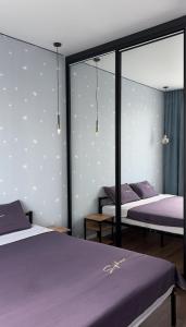 Уютная 2-комнатная квартира в районе ТРЦ Хан Шатыр dispone di 1 camera da letto, aria condizionata, soggiorno e TV a schermo piatto.