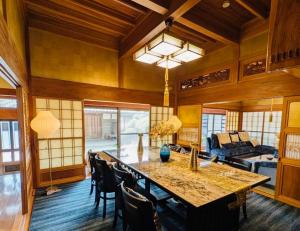 This villa's standout features are the hot tub, private open-air bath and sauna. This spacious villa features 1 living room, 5 separate bedrooms and 2 bathrooms with a bath and free toiletries. Meals can be prepared in the kitchen, which features a stovetop, a refrigerator, kitchenware and a microwave. The air-conditioned villa features a flat-screen TV, a washing machine, tatami, a dining area as well as garden views. The unit has 4 beds and 10 futons.