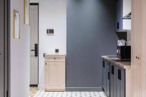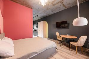 Con accesso diretto a un balcone, questo appartamento con aria condizionata comprende 1 camera da letto e una cucina con utensili.