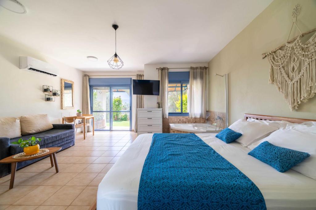 The hot tub and spa bath are the special features of this family room. Featuring free toiletries, this family room includes a private bathroom with a shower. Guests will find a refrigerator, kitchenware and a microwave in the kitchenette. The family room also includes a barbecue. The air-conditioned family room features a flat-screen TV with streaming services, a private entrance, a tea and coffee maker, a seating area as well as garden views. V této ubytovací jednotce se nachází 2 postele.