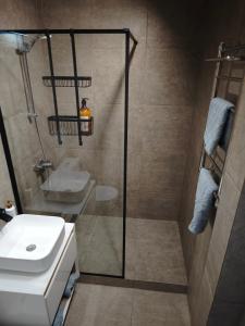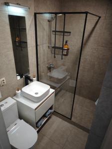 Klimatizovaný apartmán v Достык Центр má 1 ložnici, balkon a plně vybavenou kuchyň.