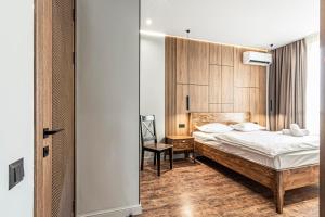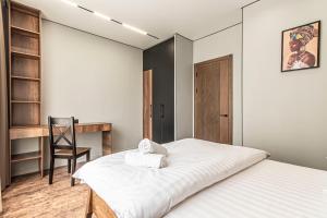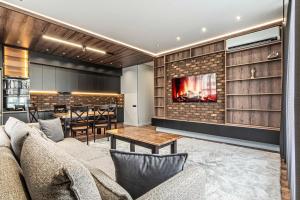 Die klimatisierte Ferienwohnung 3 ком ЖК Аль-Фараби-27 73 bietet 1 Schlafzimmer, einen Flachbild-TV und eine Küche.