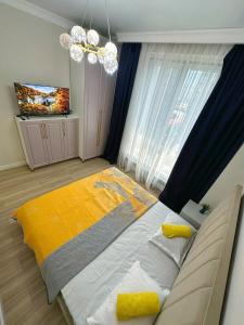 Diese Ferienwohnung mit 1 Schlafzimmer bietet den Gästen Flachbild-TV, eine Klimaanlage und ein Wohnzimmer.