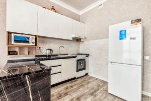 El apartamento de un dormitorio en Апартаменты ЖК Столичный-2 ofrece cocina completa y sala de estar con TV de pantalla plana.