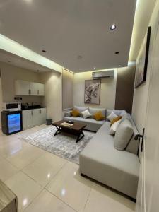 Klimatizovaný apartmán شقة فاخره في حي الربيع nabízí 1 ložnici, kuchyňský kout a TV s plochou obrazovkou.