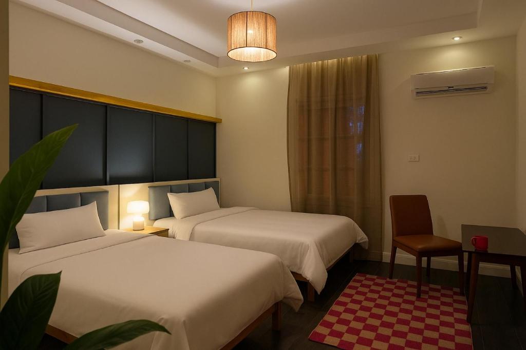 This spacious apartment consists of 1 living room, 2 separate bedrooms and 2 bathrooms with a bath and free toiletries. Guests can make meals in the kitchen that is equipped with a stovetop, a refrigerator, kitchenware and a microwave. The air-conditioned apartment provides a flat-screen TV, a washing machine, a tea and coffee maker, a dining area as well as a quiet street view. The unit offers 5 beds.