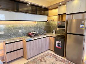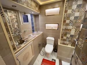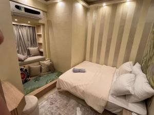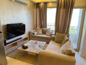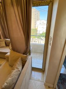 L'appartement شقة فندقية بالزمالك خلف فندق ام كلثوم اطلالة جانبية على النيل dispose d'une chambre, d'une télévision à écran plat, de la climatisation et d'un salon.