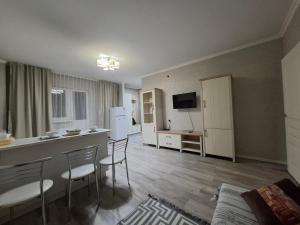 Die Ferienwohnung Квартира на Мангилик ел 17 verfügt über einen Balkon, 1 Schlafzimmer, ein Wohnzimmer und eine gut ausgestattete Küche.